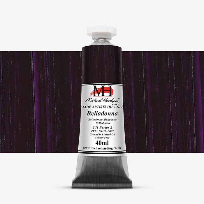 An elegant, moody violet crafted from PV23 (Dioxazine Violet), PR112, and PB29 (Ultramarine Blue). This blend of organic pigments provides excellent lightfastness and transparency, with layered depth and soft variation. With average drying time and moderate tinting strength, Belladonna is well-suited to atmospheric glazes and expressive shadow work.