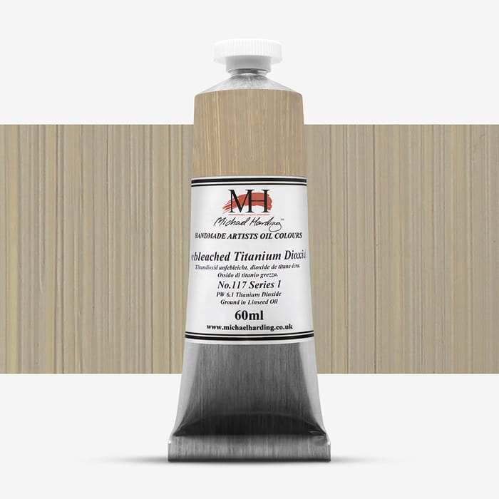 Unbleached Titanium Dioxide is manufactured using a chemical process different from the standard rutile titanium dioxide, giving it a subtle linen or lime wash, pinky-brown shade. This paint is an ideal ground or underpainting colour, with good texture and a lean surface. Its real power comes from its ability to mix into any colour, providing a “suede” effect that lends well to pastels and rich textures. Many years ago, a well-known English artist asked me to make him special batches of this colour. When his fellow artists saw it, it became part of our regular range and has proven hugely popular.
